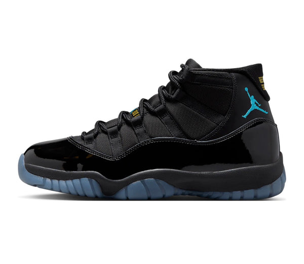 The Air Jordan 11 Retro 'Black / Gamma Blue' reimagines a classic silhouette with a sleek black upper and striking gamma blue accents for a contemporary edge. Celebrated for its elegance and performance, this edition retains the iconic patent leather design while incorporating modern materials for enhanced comfort and support. Perfect for collectors and basketball enthusiasts alike, this release embodies the spirit of innovation and style that defines the Air Jordan legacy.