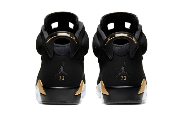 The Air Jordan 6 Retro DMP 'Defining Moments' pays homage to Michael Jordan's legendary career with a striking black leather upper elegantly accented by metallic gold details. This sneaker features premium materials and advanced cushioning for exceptional comfort and support, making it a stylish choice for both on and off the court. With its iconic design and celebratory theme, the Air Jordan 6 Retro 'DMP' is a must-have for collectors and basketball fans alike.