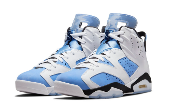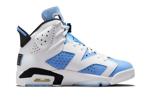 The Air Jordan 6 Retro 'White UNC' combines classic design elements with a fresh University Blue colorway, reflecting the rich heritage of Michael Jordan's alma mater. Featuring a premium white leather upper paired with striking blue accents, this sneaker offers a stylish nod to the Tar Heel colors while providing comfort and support with its iconic Air cushioning. With its bold yet elegant aesthetic, the 'White UNC' edition is a must-have for both Jordan fans and sneaker collectors.