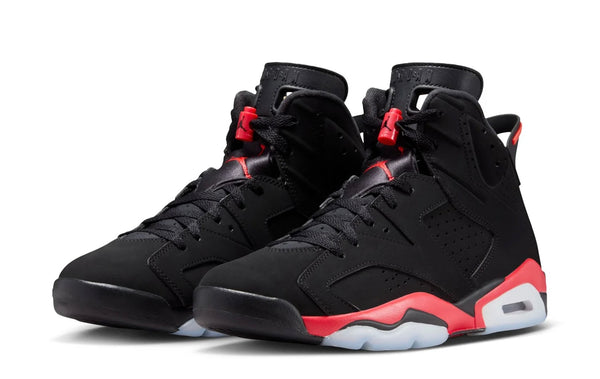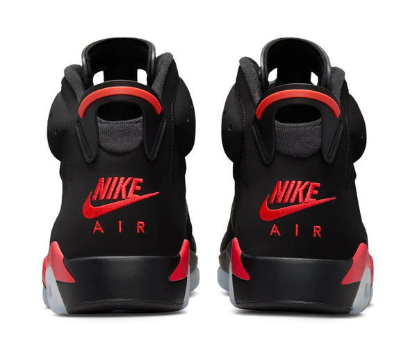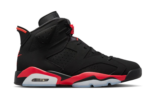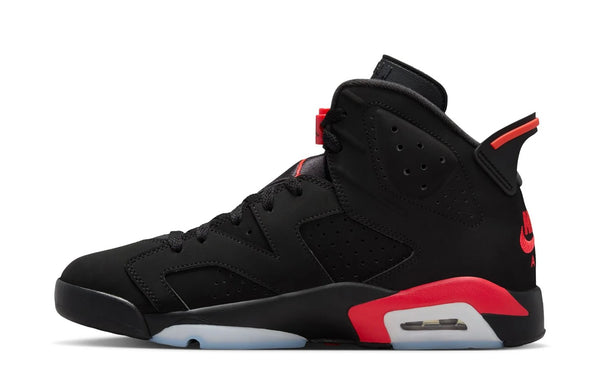 A historically inspired reinterpretation of the iconic Air Jordan 6 that brings a once-unreleased archival sample to life with bold reversed color blocking and refined construction updates. The design features a smooth black nubuck upper contrasted by vivid infrared-toned accents across the midsole, branding, and lace lock, creating a striking visual twist on the classic Infrared formula. Inspired by a late-‘90s salesman prototype, the sneaker includes nostalgic sample-style details like inner-collar text and special hangtag elements that highlight its heritage storytelling. Updated shaping, including a more accurate toe profile and slightly taller tongue, gives the silhouette a closer resemblance to the original performance era while maintaining modern comfort and collector appeal.