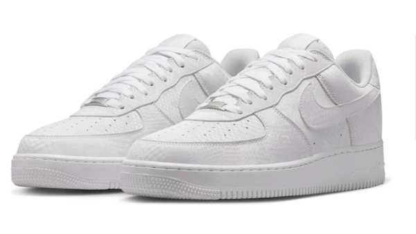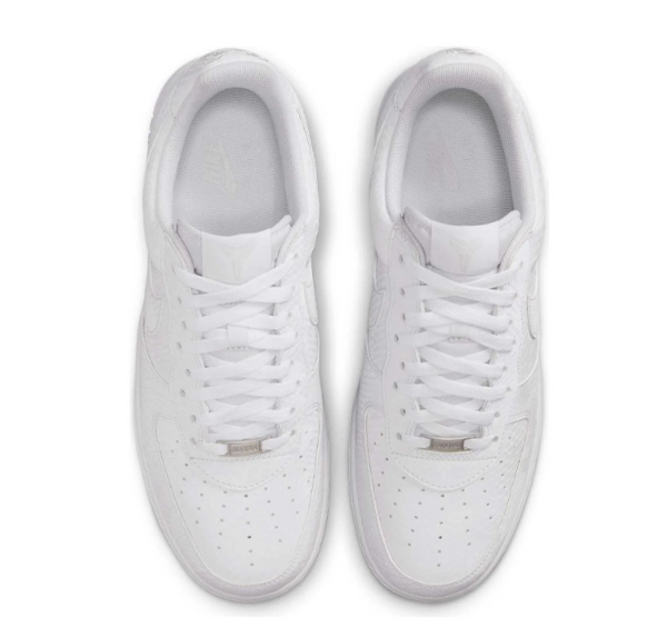 A tribute to Kobe Bryant, the Nike Air Force 1 'Triple White' boasts a premium snakeskin-textured white upper, subtly referencing his 'Black Mamba' legacy. Featuring his iconic jersey numbers (8 & 24) and a discreet Kobe Sheath logo, this clean design offers understated style and timeless appeal.