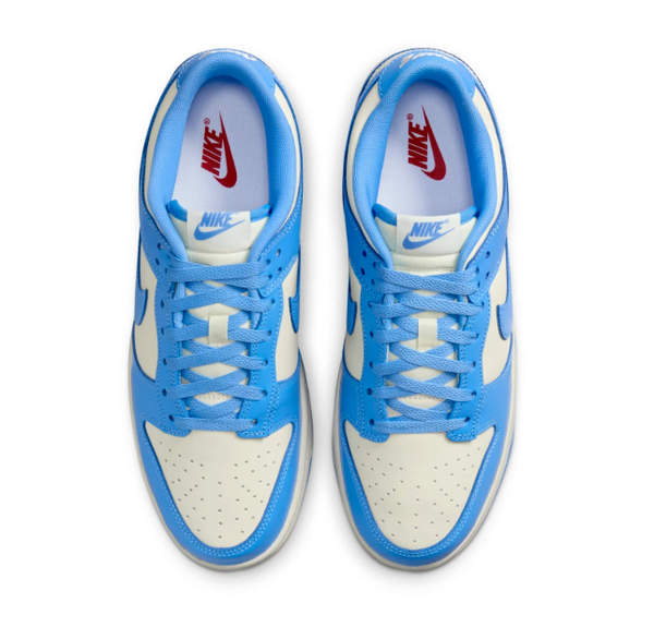 The Nike Dunk Low Retro 'UNC - University Blue' is a stylish tribute to the University of North Carolina, featuring a fresh white and university blue color palette that exudes classic charm. Designed with premium materials, this low-top sneaker combines comfort and durability, making it ideal for everyday wear. Its sleek silhouette and iconic branding make the Dunk Low Retro a versatile choice for both basketball aficionados and fashion-savvy individuals.